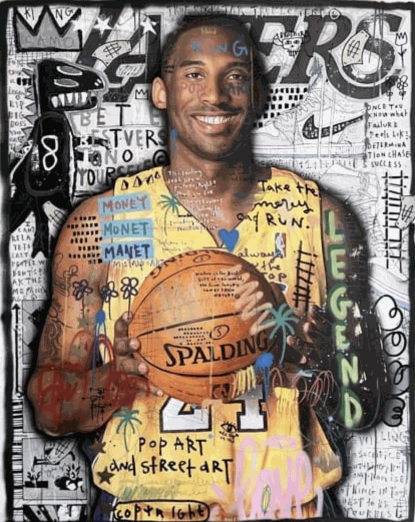 The smiling face of Kobe Bryant holding a basketball, decked in his legendary Lakers jersey, looks back upon curious viewers who are coming to discover the work of French born street/pop artist JISBAR. The Lakers legend is only one of many historical phenomenons that have been reimagined and in a way, reincarnated in style, thanks to this artist.