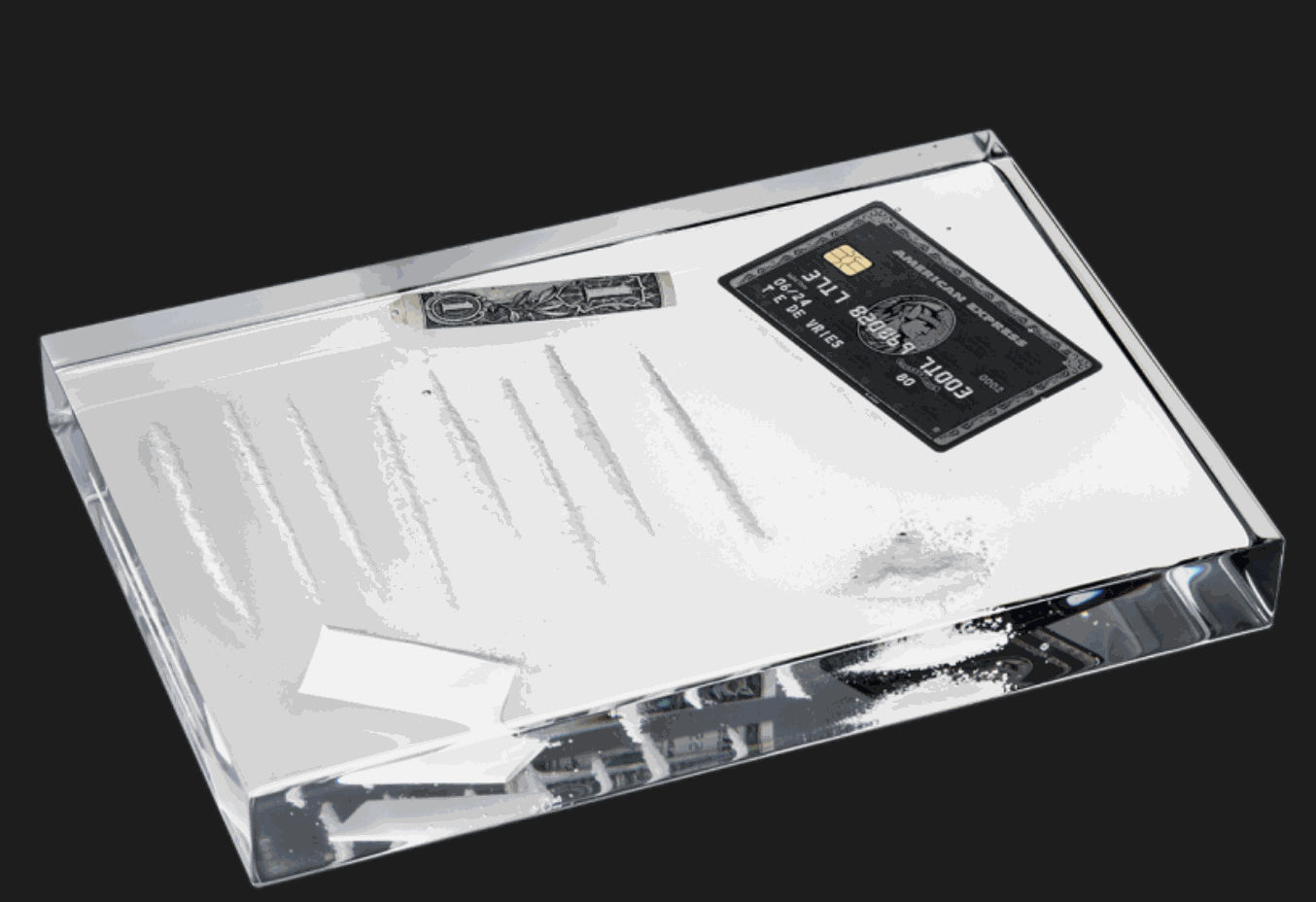 His work also comes from the most relatable of places like waking up and looking over at a bedside table. The contents of which De Vries imagined to be immortalized in resin. Thus, the Wasted Table was born. Its provocative and boldly honest content is strategically placed and the epoxy resin and the black coated steel firmly supports the structure so the piece is fully usable as…you guessed it - a bedside table. In the same brilliant vain as a bedside table, we have the infamous Wasted Brick. The contents are a snapshot of a lifestyle that is the ultimate conversation starter.